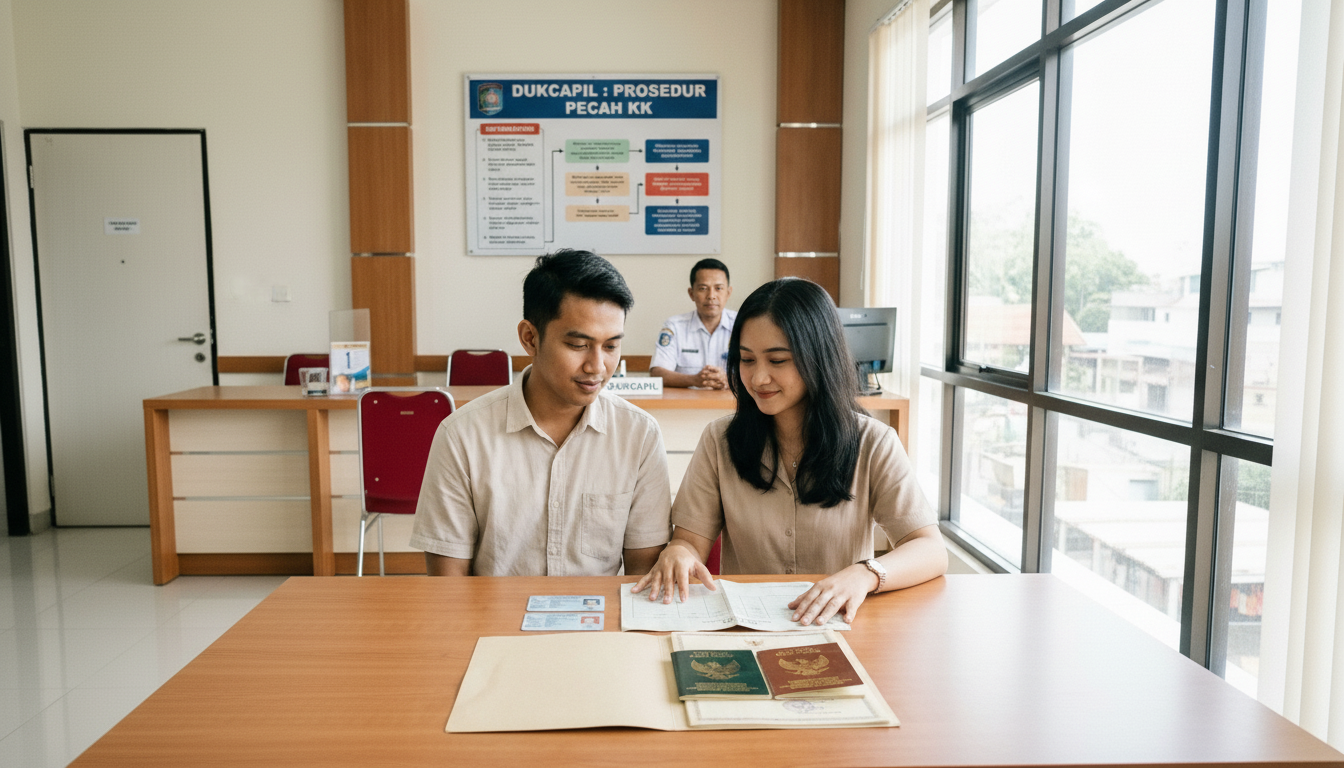 Pecah Kartu Keluarga (KK) karena menikah adalah salah satu urusan administrasi kependudukan yang paling sering membuat bingung pasangan baru menikah. Bukan karena prosesnya rumit, melainkan karena banyak pemohon datang ke Dukcapil tanpa persiapan dokumen yang lengkap. Setelah menikah, pasangan suami istri wajib memiliki KK sendiri yang terpisah dari orang tua atau keluarga sebelumnya.